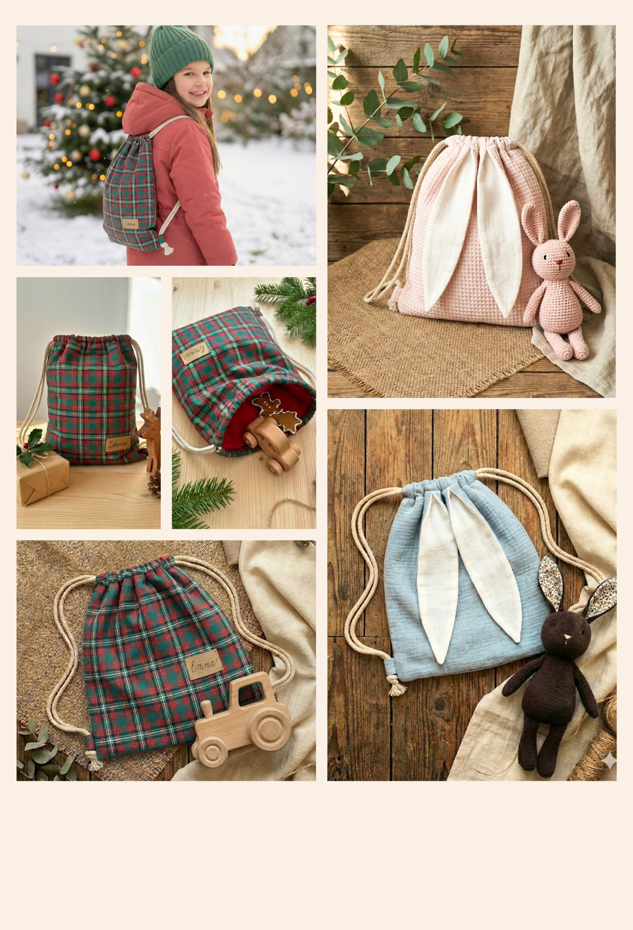 Imagine their eyes lighting up! First, it’s a cute eco-friendly wrapping for their toys. Then, it becomes their own special backpack for treasures. Personalize it with festive fabrics or their name!